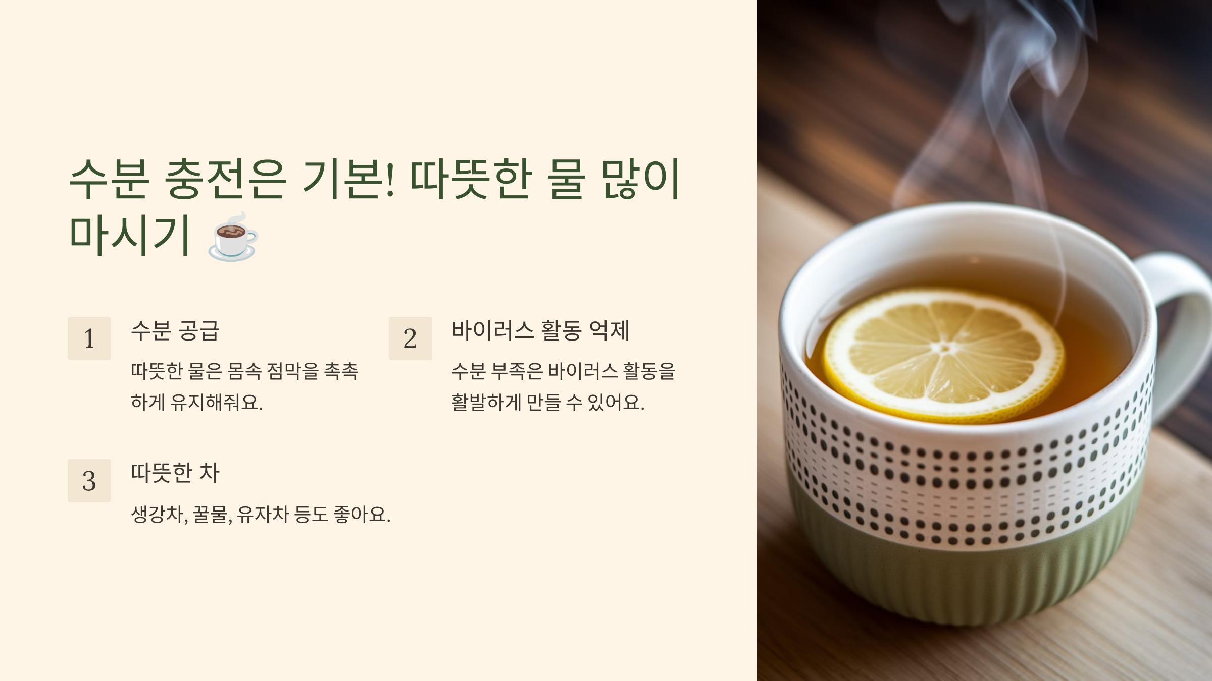 1. 따뜻한 물 많이 마시기 ☕