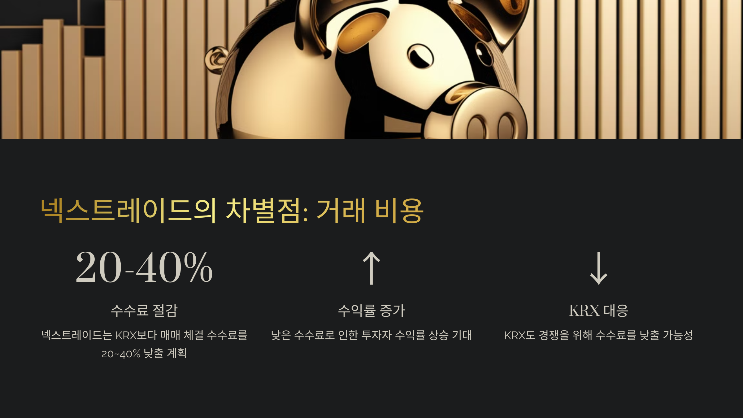 넥스트레이드는 KRX와 차별화된 여러 요소를 내세우고 있어요. 투자자들에게 보다 유리한 조건을 제공할 가능성이 크죠! 🎯