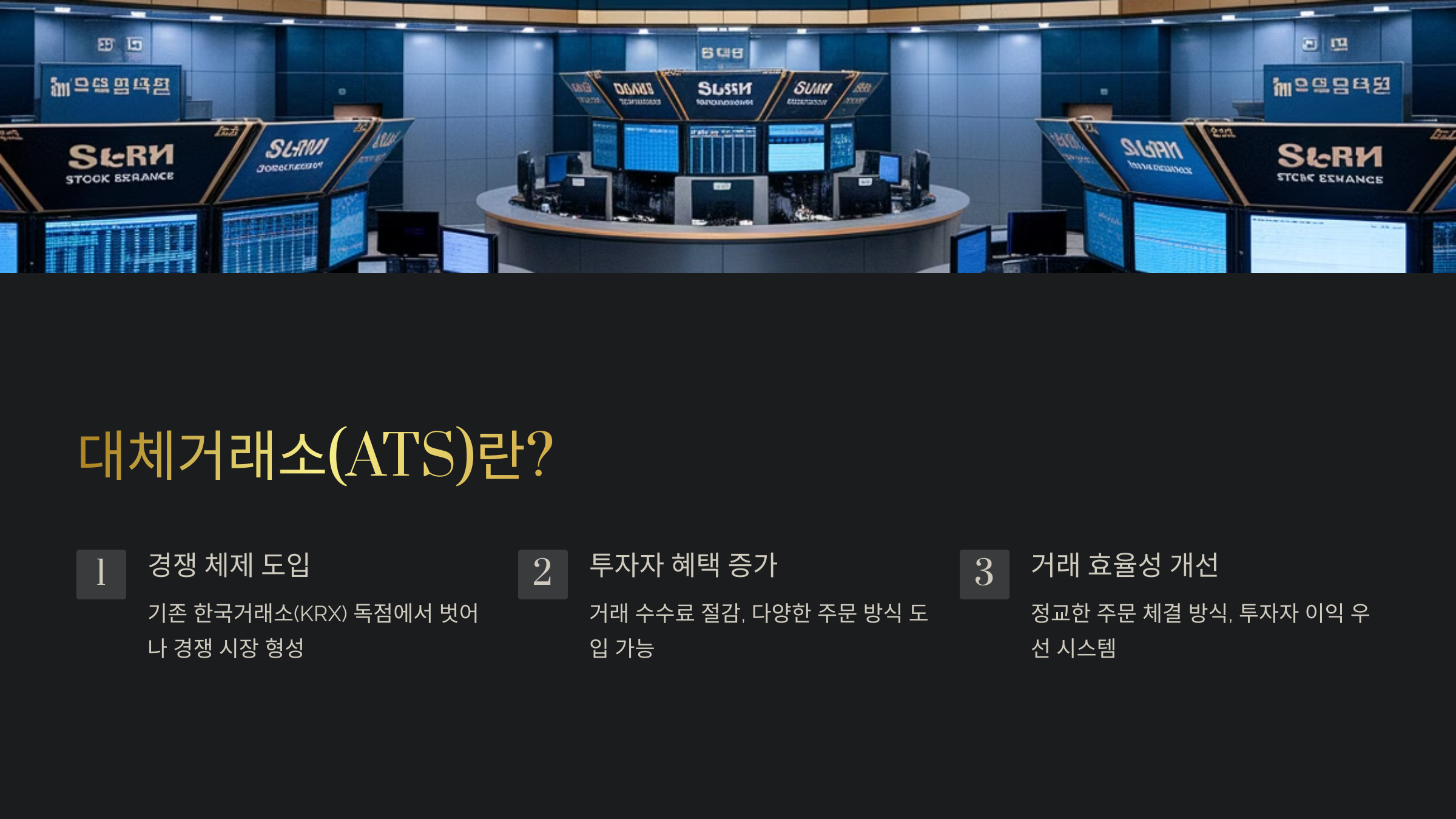 대체거래소(ATS, Alternative Trading System)는 기존의 단일 거래소 체제에서 벗어나 경쟁 체제를 도입한 주식 거래 플랫폼이에요. 한국에서는 오랫동안 KRX가 유일한 거래소였지만, 이제 넥스트레이드가 출범하면서 투자자들에게 더 다양한 옵션이 제공되죠.