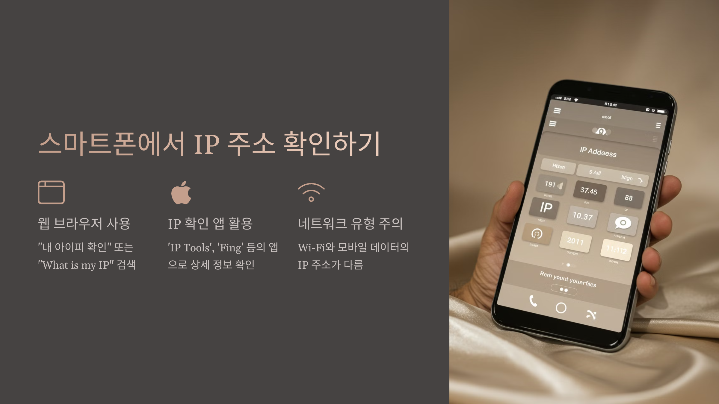 스마트폰으로 인터넷을 사용하다 보면 내 IP 주소가 궁금할 때가 있죠? IP 주소는 스마트폰의 '인터넷 주소' 같은 건데요, 이걸 알면 인터넷 연결 상태를 확인하거나 문제 해결에 도움을 받을 수 있어요. 스마트폰에서 IP 주소를 확인하는 방법, 함께 알아볼까요?