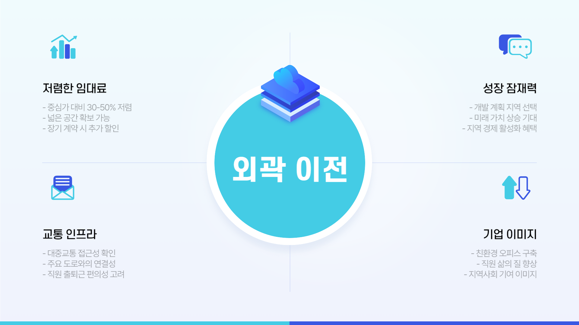 서울 중심부의 높은 임대료를 피하고 싶다면 외곽 지역을 고려해 보세요. 강남이나 종로 같은 전통적인 업무 지구와 비교할 때, 외곽 지역은 훨씬 저렴한 비용으로 사무 공간을 확보할 수 있습니다. 예를 들어, 성수동, 마포구, 송파구는 최근 몇 년간 기업들에게 각광받는 지역으로 떠오르고 있습니다. 이 지역들은 교통이 편리할 뿐 아니라, 점차 발전하고 있는 상업 및 문화 인프라를 갖추고 있어 장기적으로 매력적인 선택이 될 수 있습니다.