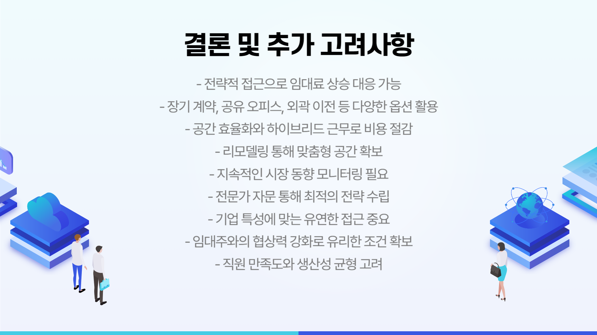 각 기업의 특성과 목표에 맞는 맞춤형 전략을 세우고, 장기적인 관점에서 안정성과 유연성을 확보하세요. 이렇게 한다면 임대료 상승이라는 문제를 효과적으로 극복할 수 있을 것입니다.