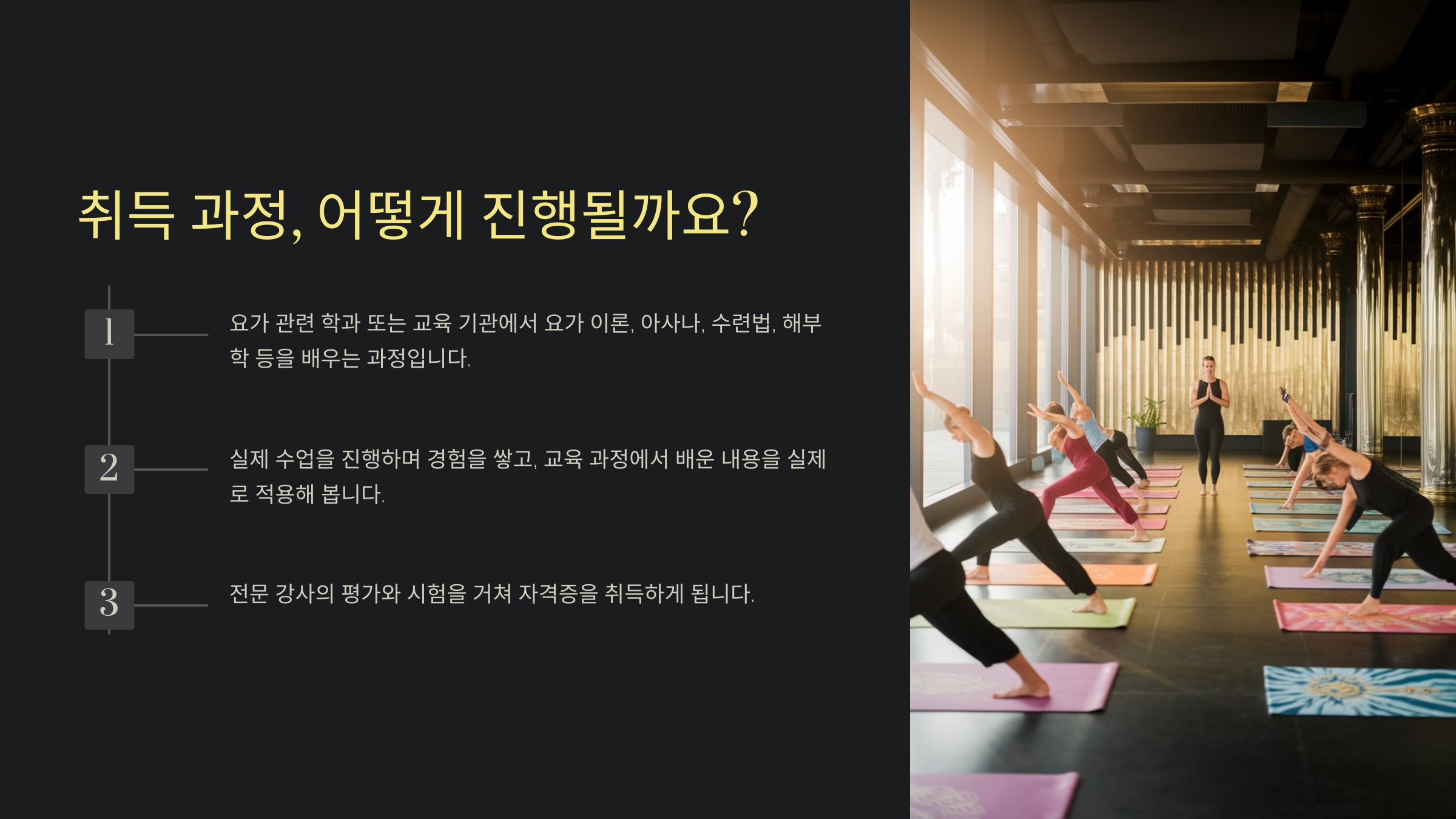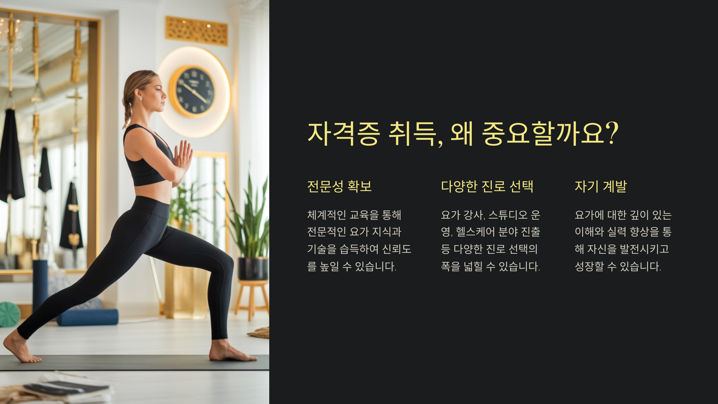 요가 강사 자격증은 전 세계적으로 인정받으며, 건강과 웰빙을 지향하는 현대인들에게 큰 관심을 받고 있어요. 이 자격증은 단순히 운동을 가르치는 역할뿐 아니라, 몸과 마음을 연결하는 특별한 경험을 제공합니다.