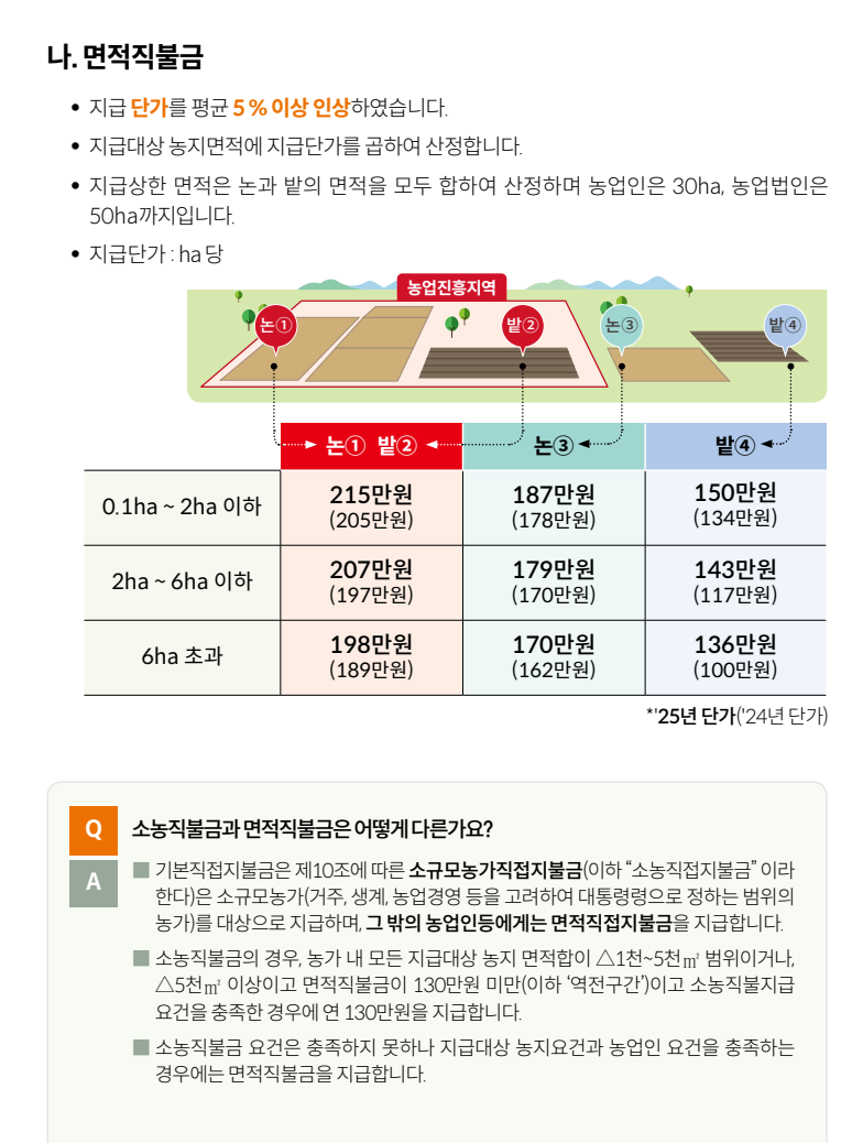 ✔ 면적에 따라 지급 단가 차등 적용 (2025년 평균 5% 인상)