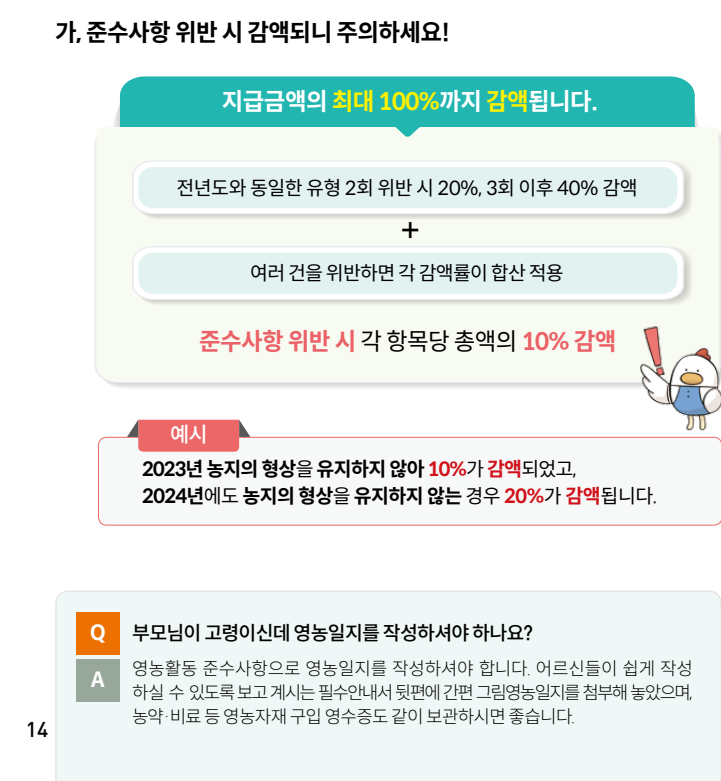하지만 필수 준수사항을 지키지 않으면 직불금을 100% 받기 어렵습니다!