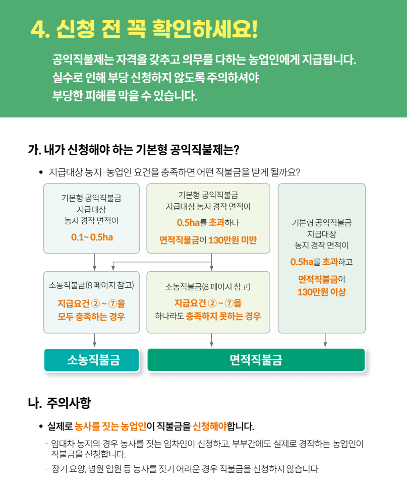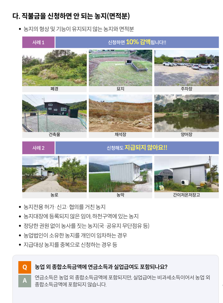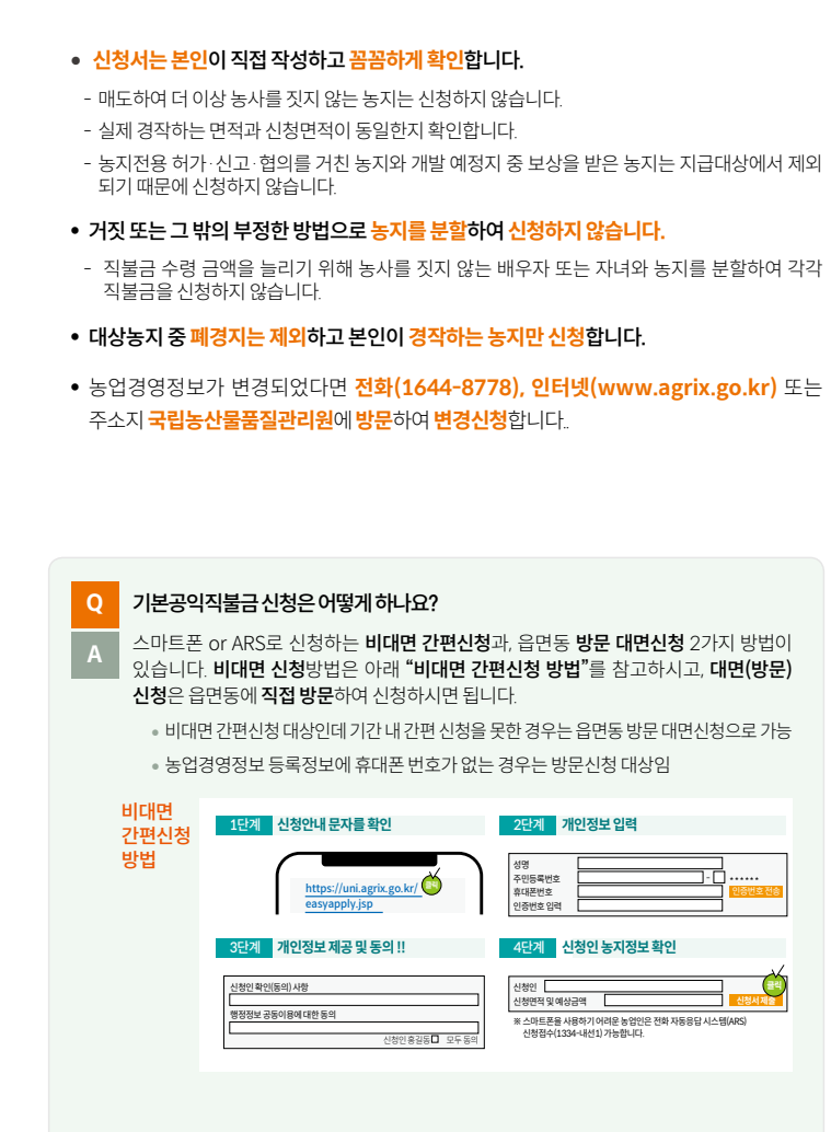 - 반드시 실제 경작하는 농업인이 신청해야 합니다.